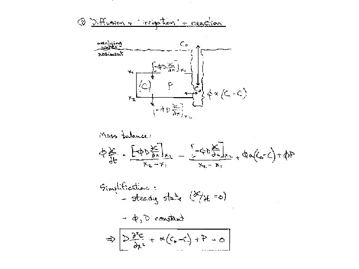 Data for diffusion coefficients (see Boudreau, 1996, for tables and procedures) Limiting equivalent conductivities have been measured (sometimes as ƒ(T)) for many ions. With this, R = gas constant F = Faraday constant Z = ion charge = lim. Equiv. conductivity Accounting for solvent viscosity: For temperature dependence: Either tabulated, or For seawater: 0. 92 (25°) to 0. 95 (0°)