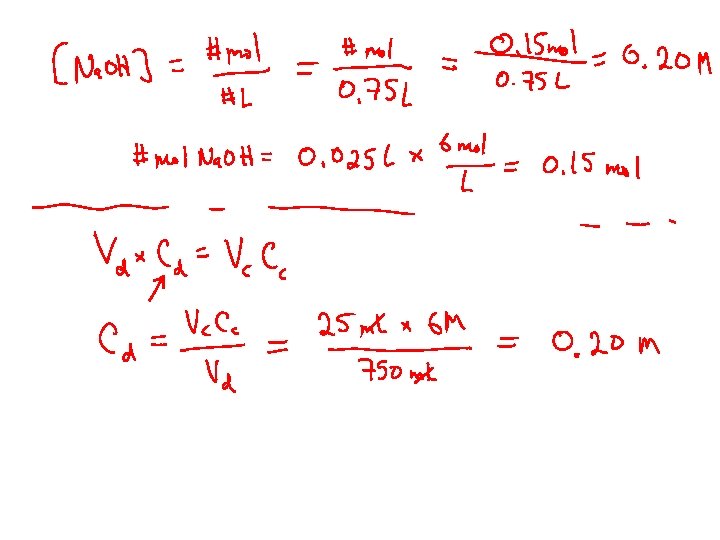 Titration Example Problems: Just like your lab! 1. Standardizing an Na. OH solution using a “primary standard” A solution of sodium hydroxide is “standardized” by titration using solid oxalic acid, H 2 C 2 O 4, as the acid. It is found that 24. 5 m. L of the Na. OH solution is needed to react completely with 2. 05 g of oxalic acid. What is the concentration of the Na. OH solution? H 2 C 2 O 4(aq) + 2 Na. OH 2 H 2 O(l) + Na 2 C 2 O 4(aq)