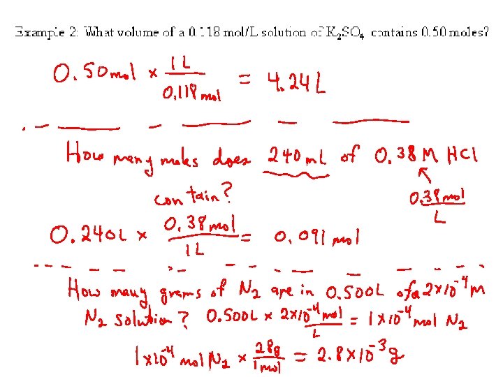 Solution Concentration: Molarity • Molarity = moles solute per liter of solution • 0. 30 mol NH 3 dissolved in 0. 500 L Concentration = • Written like: [NH 3] = 0. 60 M