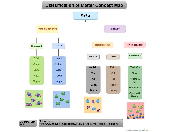 Concept Map Create a concept map of matter Matter Pure substance Element Compound Mixture Homogeneous Solution Heterogeneous Colloid Suspension