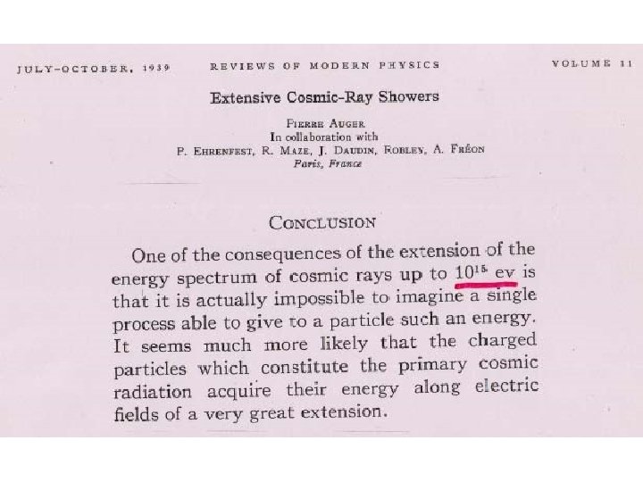Volcano Ranch J. Linsley 1963 1 st cosmic ray ~ 1020 e. V