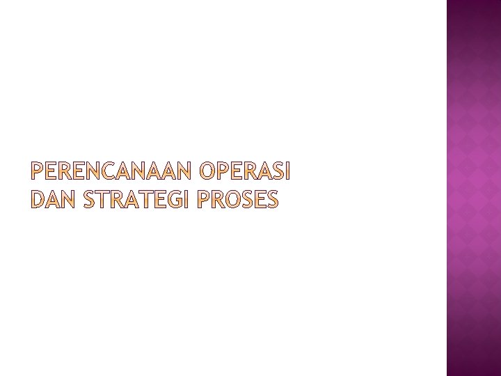 Saat menganalisis dan merancang proses untuk mengubah bahan baku menjadi barang dan jasa, terdapat pertanyaan sebagai berikut : 1. Apakah prosesnya dirancang untuk mencapai keunggulan bersaing dari segi diferensiasi, respon cepat, atau biaya rendah. 2. Apakah prosesnya menghilangkan langkah-langkah yang tidak menambah nilai? 3. Apakah prosesnya memaksimalkan nilai pelanggan sebagaimana dilihat oleh pelanggan? 4. Apakah prosesnya akan mendatangkan banyak pesanan?