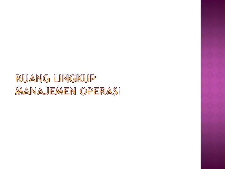 Pengertian Manajemen Operasi Mengapa Kita Mempelajari Manajemen Operasi Hal-Hal Yang Dilakukan Manajer Operasi 10 Keputusan Kritis dari Manajemen Operasi Sejarah Manajemen Operasi Kegiatan Operasi dalam Sektor Jasa Tren Baru Yang Menarik Di Bidang Manajemen Operasi Tantangan Manajer Operasi Tantangan Untuk Meningkatkan Produktivitas