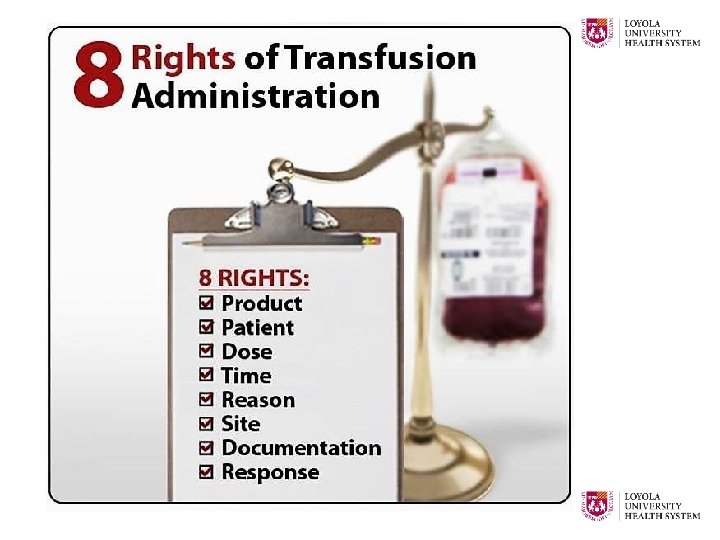 Other Risk Mitigation Strategies • “Universal” leukoreduction • • • Reduces FNHTRs Reduces alloimmunization to HLA antigens Reduces platelet refractoriness Reduces risk of CMV transmission Reduces mediastinitis in CT surgery • “All male” plasma selection (reduces TRALI risks) • HLA / neutrophil Ab screening, female platelet donors • Supplemental bacteriologic testing of platelets • Repeat ABO / Rh testing to confirm recipient typing • Selective recipients protections (e. g. CMV, irradiation) • Application of pathogen inactivation techniques / products