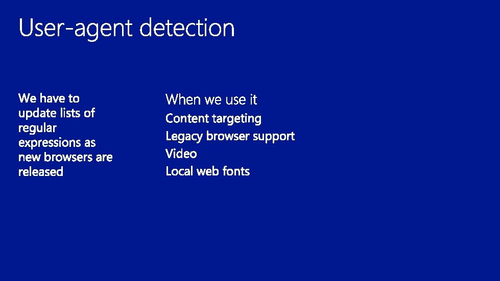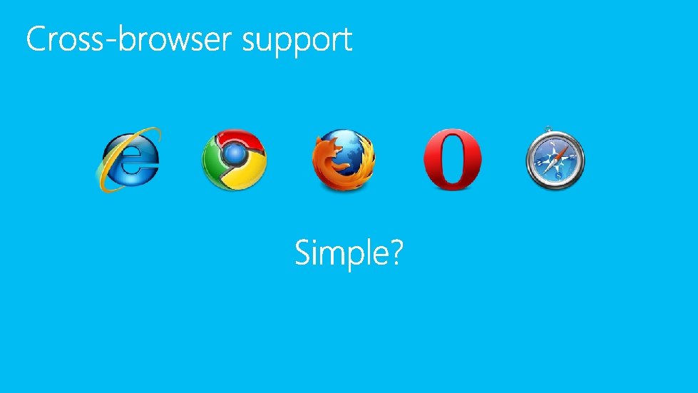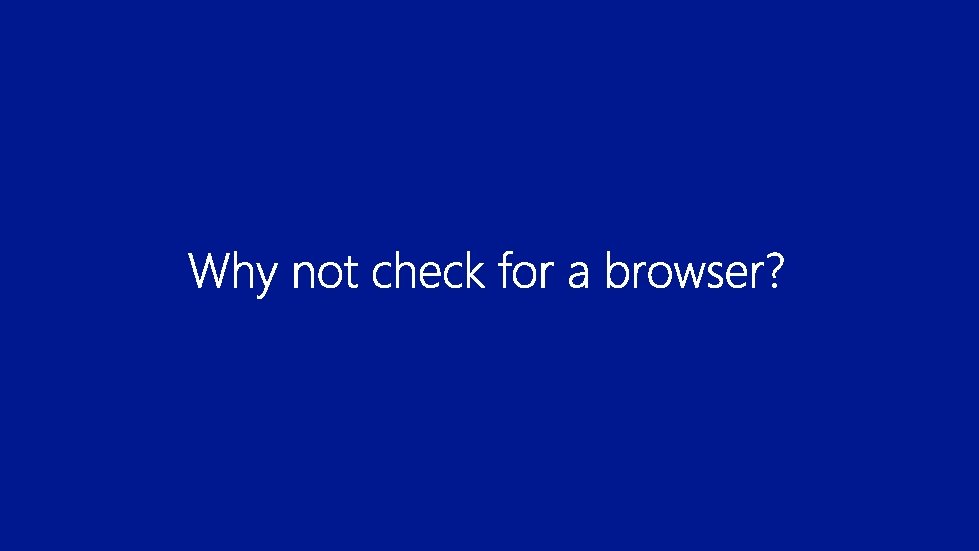// If not IE then use add. Event. Listener… if (navigator. user. Agent. index. Of("MSIE") == -1) { window. add. Event. Listener( “load”, pop. Message, false ); } else if (window. attach. Event) { window. attach. Event( “onload”, pop. Message); }