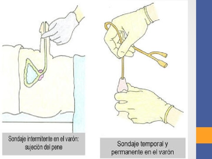 Objetivo del sondeo vesical üControl estricto de diuresis como método de diagnóstico y control hemodinámico üMantener drenaje permanente de la vejiga üPreparación pre-operatoria de intervenciones pélvicas. üVaciar vejiga en pacientes inconscientes y con retenciones urinarias crónicas. üRealizar tratamientos con irrigaciones vesicales.