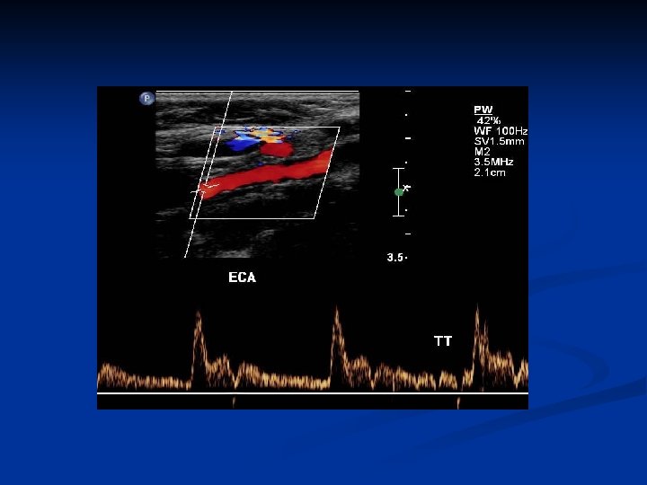 Indications for Ultrasound n Evaluation of patients with TIA n n Transient Ischemic Attack Evaluation of patients with CVA n Cerebrovascular Accident Evaluation of carotid bruits n Follow up of known disease n Monitor endarterectomy results n Evaluation of pulsatile neck mass n