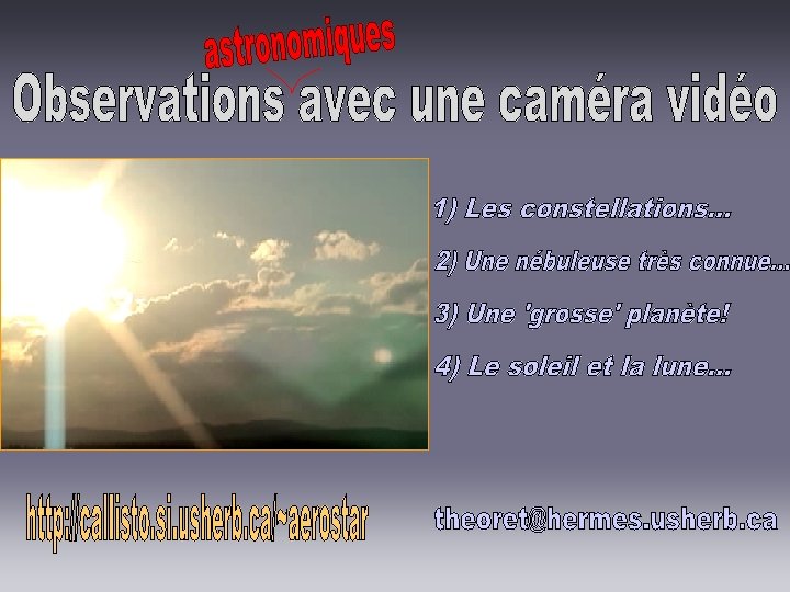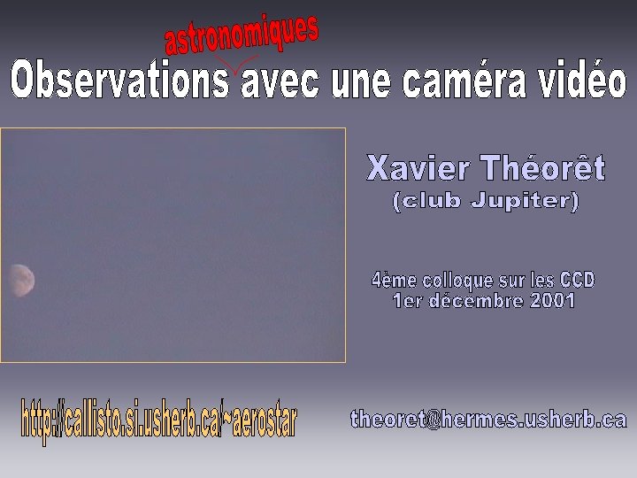 Merci à l’organisation du 4ème colloque sur les CCD pour avoir rendu cette causerie possible. theoret@hermes. usherb. ca http: // go. to / timelapse