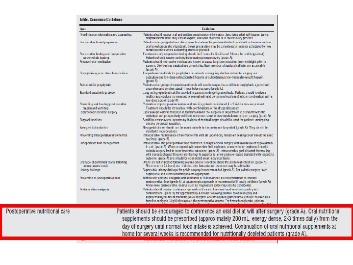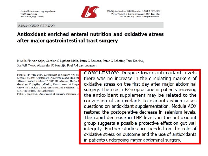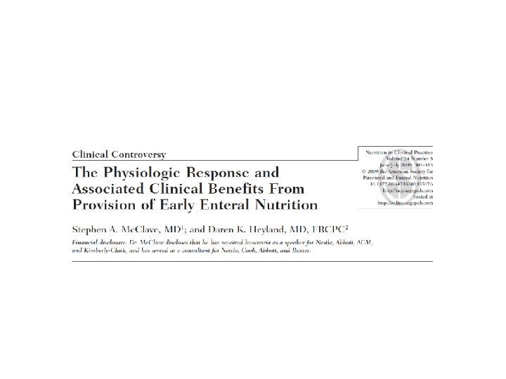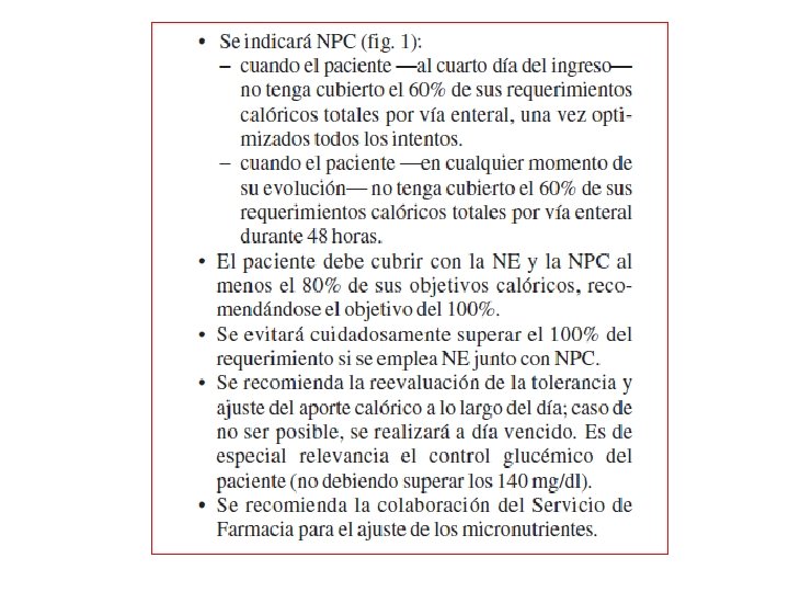 Perioperative intravenous glutamine supplementation in major abdominal surgery for cancer: A randomized multicenter trial Gianotti L, Braga M, Bozzetti F, et al Ann Surg 2009 250: 684 -90 428 Pacientes neoplásicos: NO VENTAJAS § § § Pérdida de peso < 10 % en 6 meses NP perioperatoria con Gln [0, 4 -> 0, 25 g/kg/d] Evolución a corto plazo
