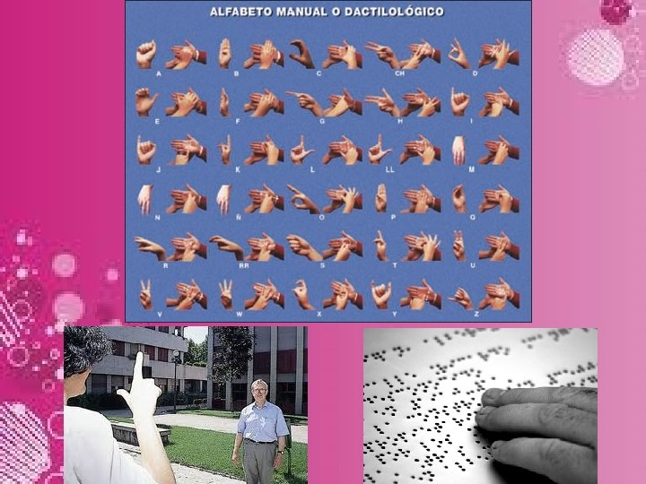 4. 3 SISTEMAS DE COMUNICACIÓN DE PERSONAS SORDO-CIEGAS § Sistemas alfabéticos: son aquellos que se basan en el deletreo del mensaje, transcribiendo letra a letra el contenido del mismo. Por ejemplo sistema dactilológico visual o en el aire, sistema dactilológico visual-táctil, sistema dactilológico táctil o en palma, dedo como lápiz, braille manual, Morse…