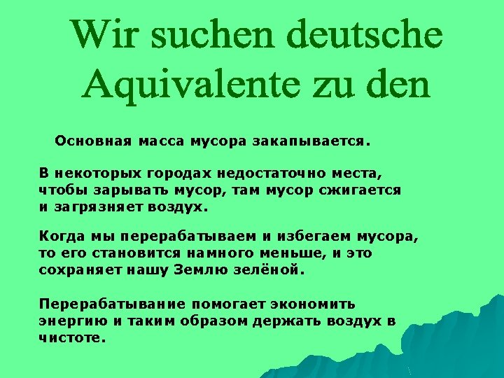 ist ein Zuhause fur viele Tiere schutzt den Menschen vor Kalte sorgt fur die Sauberkeit Es ist wichtig, den Wald zu schutzen, weil er …. und der Luft Der Wald dass denn schutzt das Feld vor Durre gibt uns Holt (засуха) (древесина) schmuckt unseren Pianeten darum