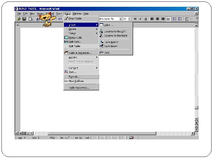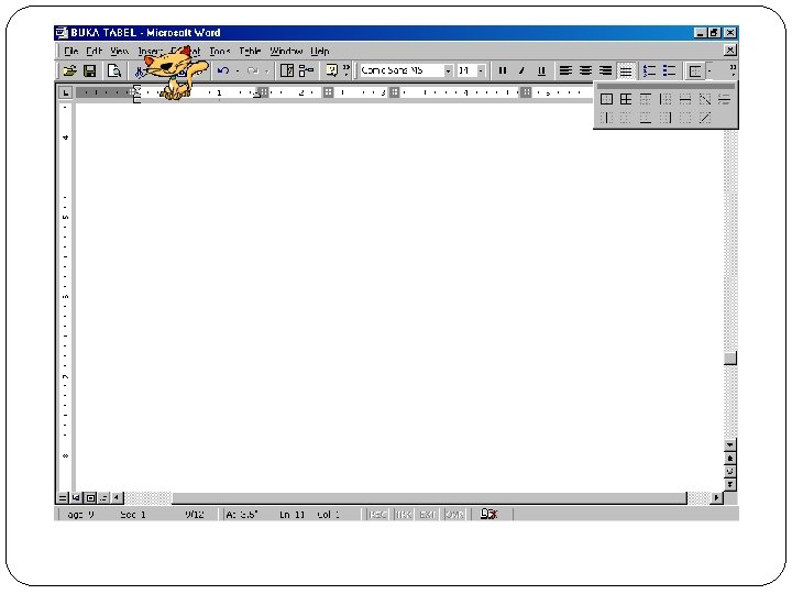 toolbar standard pilih Draw Table untuk membuat tabel yang rumit. Cara seperti ini sama dengan menggunakan pensil atau ballpoint saat kita membuat tabel. Oleh karena itu cara ini cocok untuk membuat tabel yang rumit. ► Pilih