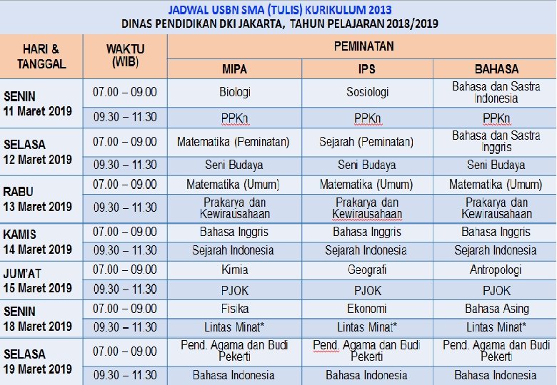 JADWAL PELAKSANAAN UN 2019