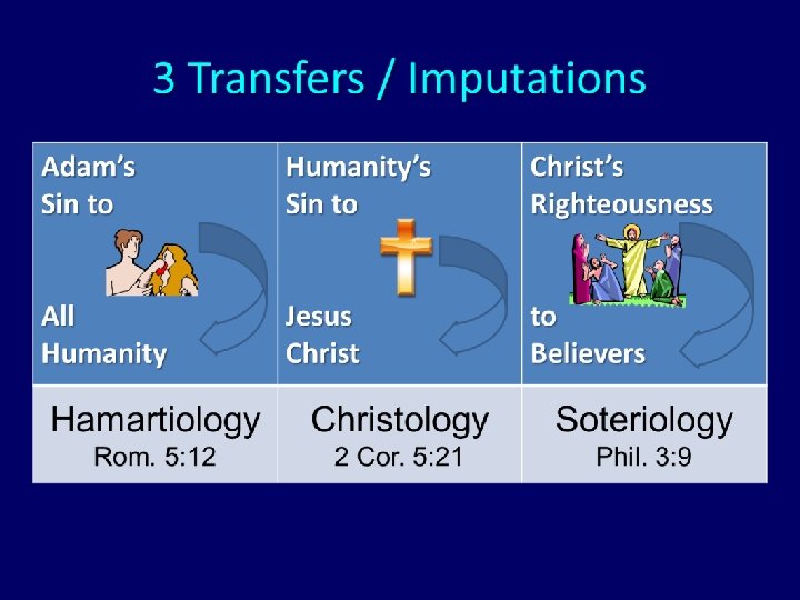 IV. Salvation Words • Redemption – payment of a purchase price in order to release from bondage (apolútrōsis, Rom. 3: 24) • Reconciliation – change of relationship from one of hostility to one of peace (katallássō, Rom. 5: 10) • Expiation – removal of sin’s eternal penalty (Ps. 103: 11 -12) • Propitiation – satisfaction of divine wrath (hilasmós, 1 John 2: 2) • Imputation – Christ’s righteousness is transferred to us at the point of faith (Philip. 3: 9)
