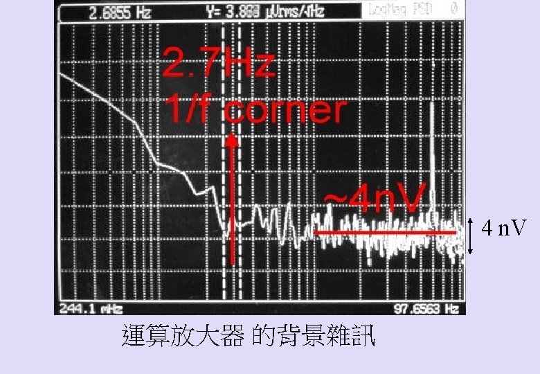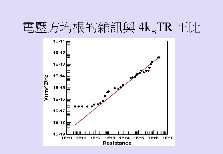 • The thermal noise is usually expressed as Sv(f) = 4 k. BTR (V 2/Hz) where k is the Boltzmann’s constant (1. 38 x 10 -23 J/K), R is the resistance of the conductor, T is the absolute temperature, and Sv is the voltage noise power spectral density.