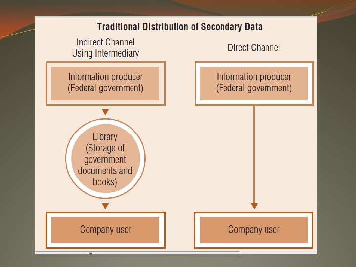 LIBRARIES Traditionally, libraries’ vast storehouses of information have served as a bridge between users and producers of secondary data. The library staff deals directly with the creators of information, such as the federal government, and intermediate distributors of information, such as abstracting and indexing services. The word library typically connotes a public or university facility. However, many major corporations and government agencies also have libraries. A corporate librarian’s advice on sources of industry information or the United Nations librarian’s help in finding statistics about international markets can be invaluable