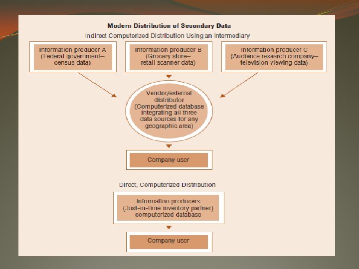 External Data External data are generated or recorded by an entity other than the researcher’s organization. The government, newspapers and journals, trade associations, and other organizations create or produce information. (varlık) Traditionally, this information has been in published form, perhaps available from a public library, trade association, or government agency.
