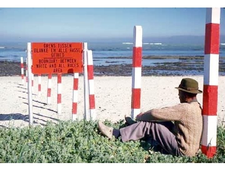 • The Group Areas Act… It forced people of certain races into living in designated areas. • There were racially segregated beaches and public areas (LAW). • Race laws touched every aspect of social life, including prohibiting marriage between nonwhites and the sanctioning of “white-only'' jobs (LAW). • List three ways blacks and whites were separated in your own words.