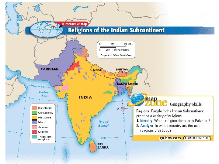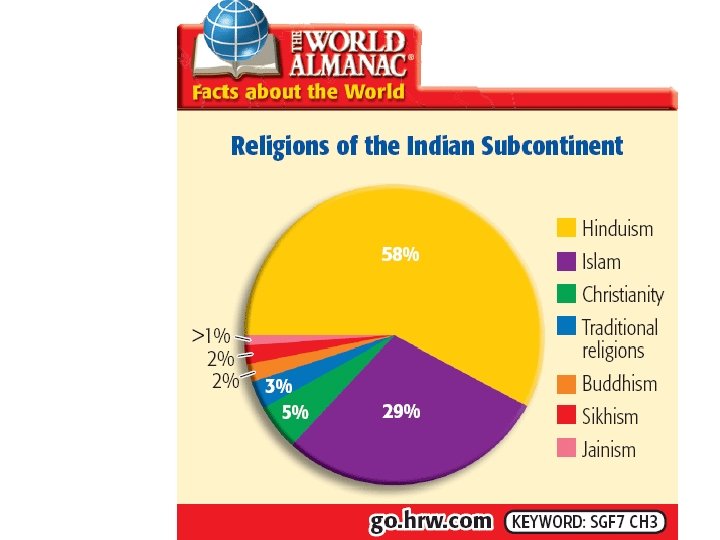 INDIA: CULTURAL GEOGRAPHY • Religions: • Hinduism 81. 3% • Muslim 12. 0% – Sunni 9. 0% – Shiite 3. 0% • Christian 2. 3% – Protestant 1. 1% – Roman Catholic 1. 0% • Sikh 1. 9% • Buddhist 0. 8% • Jain 0. 4% • Zoroastrian 0. 01% • Other 1. 3%