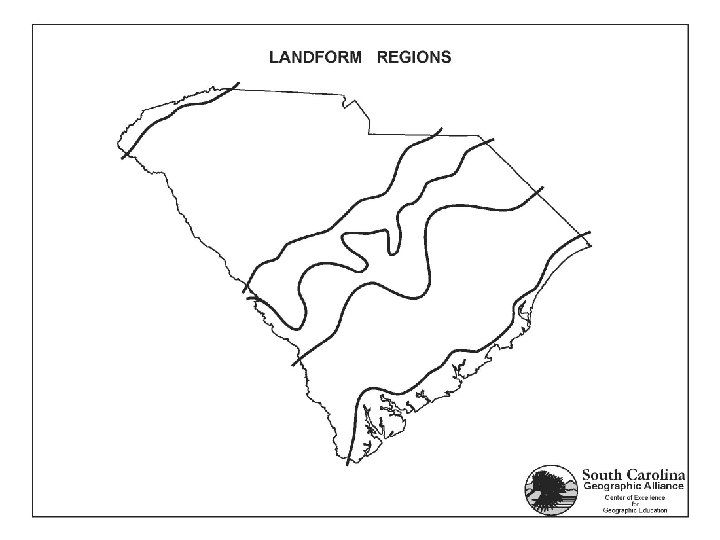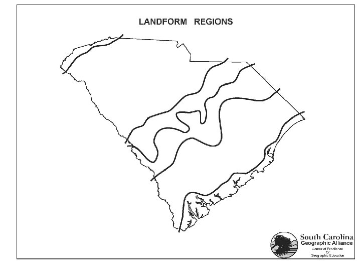 Study Guide SC Geography Name, label, and identify the main characteristics of the 6 landform regions of SC. 1. 2. 3. 4. 5. 6. 7. Define fall zone. 8. The fall zone divides the state into the __________ and the __________. Name label and identify the main characteristics of the 3 river systems of SC. 9. 10. 11.