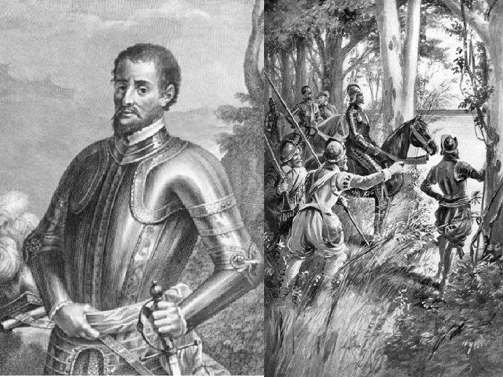 Hernando de Soto • Explorer for Spain. • He searched for gold and slaves. • He and his men traveled north from Spanish Florida and encountered Native Americans in South Carolina. • He treated the Native Americans badly by stealing from them and kidnapping one of their leaders. • He never built a settlement, but continued to travel throughout the Southeastern U. S. looking for riches.