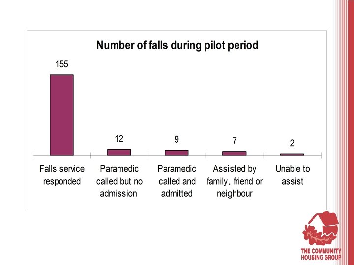 Access to Falls Response Service • 4, 500 older and other vulnerable people living in Wyre Forest area • Connected to Worcestershire Tele. Care Monitoring and Response Centre located in Malvern • Range of older and other vulnerable people living in Sheltered Housing, Private rented and Owner Occupiers