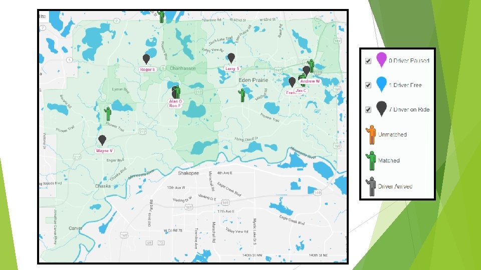 What’s Next? Service Hours Expansion of operation (evenings and weekends) Service area expansion Shakopee 494 Corridor County-Wide Paratransit TNC Services Partnerships Electric AV Service Vehicles Demonstrations