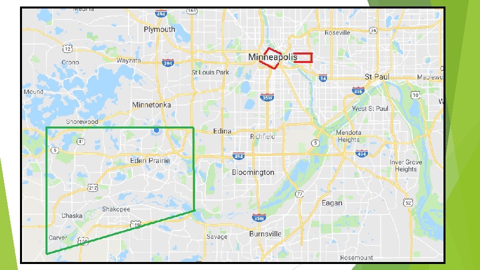 Service Area Statistics Population: 118, 588 (Minneapolis: 413, 651) 89. 8 Square Miles (Minneapolis: 58. 4) 72, 095 Jobs (Minneapolis: 324, 017) Average Median HH Income over $100, 000 (Minneapolis: $73, 231)