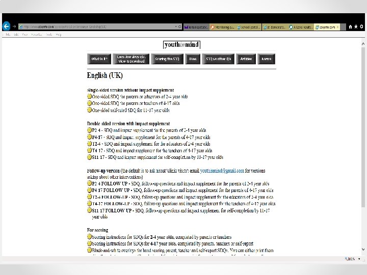 Strengths and Difficulties Questionnaire • www. sdqinfo. com • The Strengths and Difficulties Questionnaire (SDQ) is a brief behavioural screening questionnaire about 3 -16 year olds • Scores indicate normal, borderline and abnormal, both for the difficulties they are encountering and the impact on relationships and learning • Can be completed by both teacher and parent to enable comparative results • Version of SDQ for pupils 11+ to complete themselves • An abnormal score identifies those struggling with high levels of psychological difficulties • Referral to CAMHS