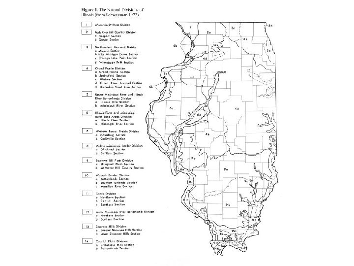 Southern Till Plains • This division is composed of dissected Illinoian glacial till south of the Shelbyville Moraine and the Sangamon River and Macoupin Creek watersheds. Both forest and prairie were present at time of settlement. Soils are relatively poor due to clay content and frequent claypan subsoil. Post oak flatwood forest is typical of the division.