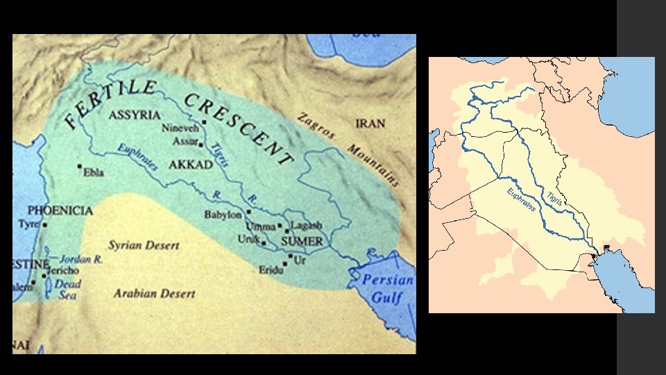 Important Bodies of Water • The Tigris and Euphrates Rivers: supported several ancient river valley civilizations in the Fertile Crescent Sumerians, Assyrians, Babylonians
