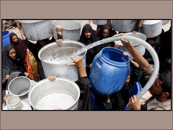 Iraq • Iraq also faces water pollution problems as a result of industry and petroleum drilling equipment. • Also, three decades of warfare have caused damage to Iraq’s water treatment plants.