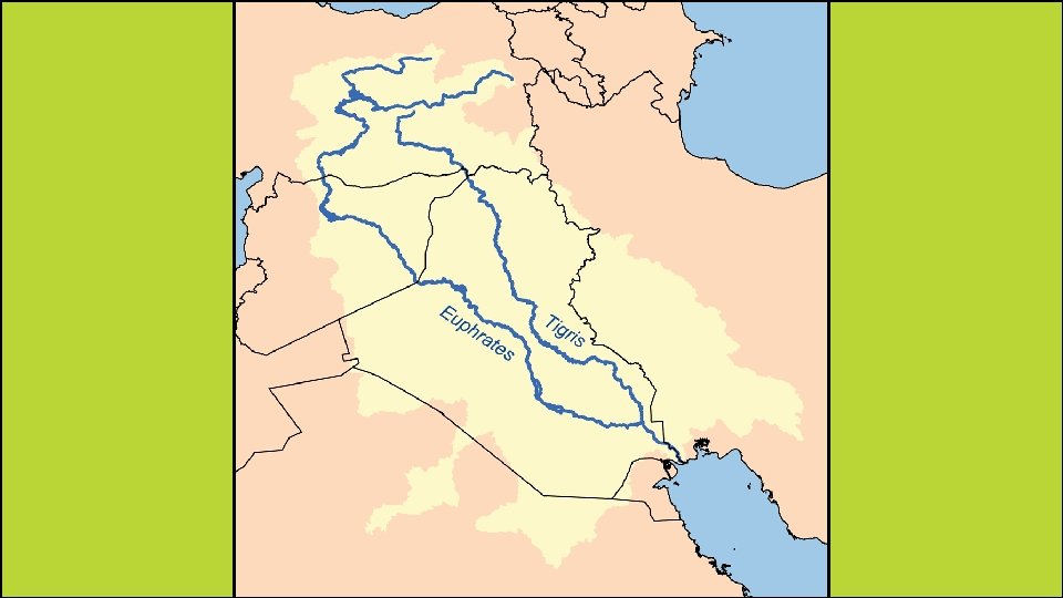 Euphrates & Tigris Rivers • • Both rivers begin in Turkey and flow south through Iraq. In southern Iraq, the Euphrates River joins with the Tigris River to form one waterway called the Shaat al-Arab. • It then flows along the border between Kuwait and Iran and empties into the Persian Gulf. • The rivers provide water for both drinking and farming. • The countries that share these rivers have had problems over how the water should be shared.