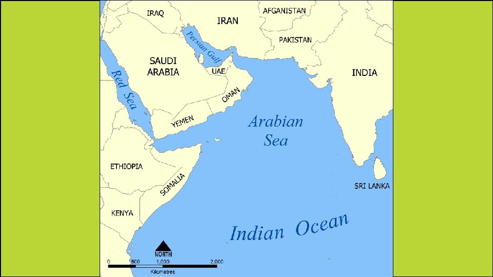 Arabian Sea • This is located north of the Indian Ocean. • It forms part of a key shipping route between Europe and India through the Suez Canal.