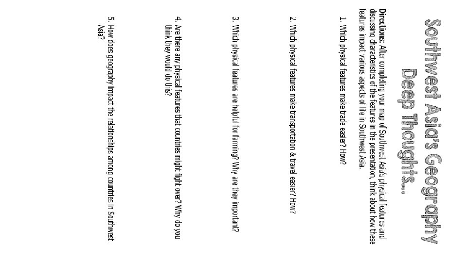 Southwest Asia’s Geography Physical Features of the Middle East
