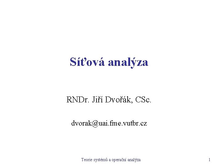 Síťová analýza RNDr. Jiří Dvořák, CSc. dvorak@uai. fme. vutbr. cz Teorie systémů a operační analýza 1