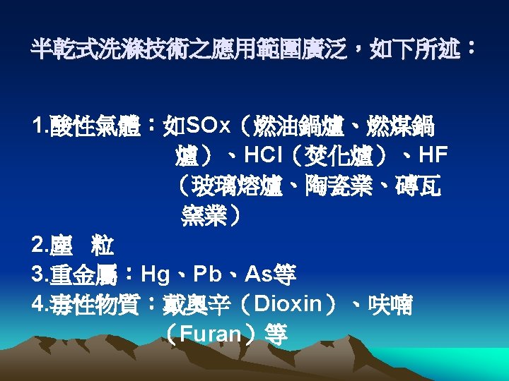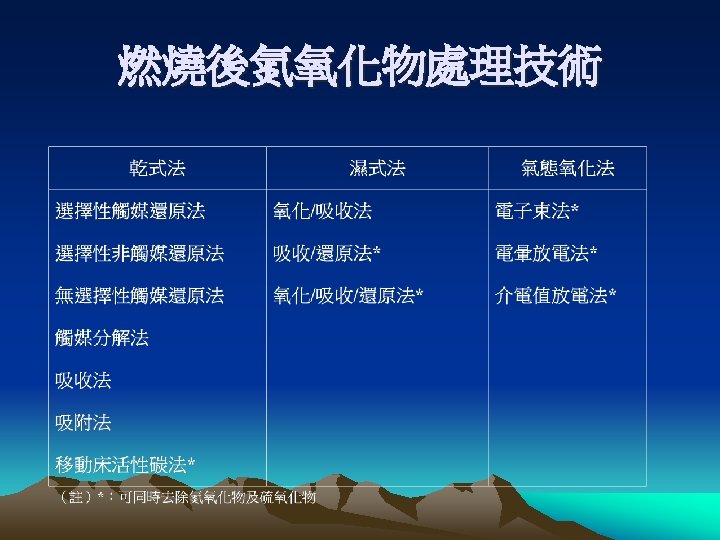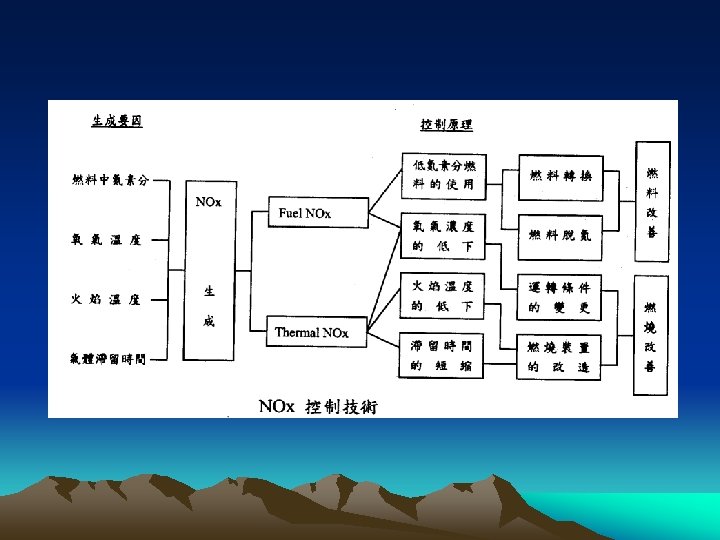 SOx NOx SOx Sulfur content NOx fuel NOx Slides: 12 Download presentation SOx 與 NOx 之排放源 • 高溫燃燒: 鍋爐, 內燃機 • SOx: Sulfur content • NOx: fuel NOx, thermal NOx SOx NOx