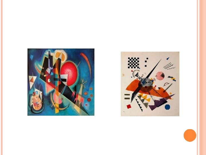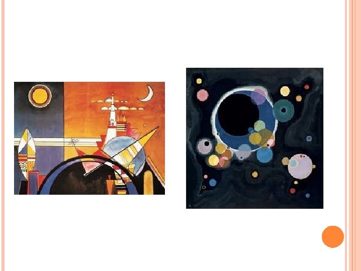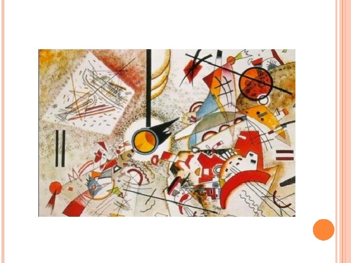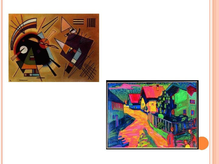 WASSILY KANDINSKY Wassily Kandinsky, soyut sanattaki en etkin isimlerden biri olarak kabul edilir. Bunun en önemli sebeplerinden biri soyut sanatın manifestolarından biri olarak kabul edilebilecek olan “Sanatta Tinsellik Zihinsellik Üstüne” adlı eseridir. Sanatçı, önceleri İzlenimci; daha sonra da Fovist eğilimli manzaralar yaptı. yavaş figüratif sanattan uzaklaşmaya başladı. 1910′dan sonra figüratif eser vermedi.