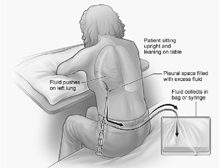 Pleural Effusion • Nursing Management – Implementing the medical regimen – Thoracentesis positioning – Pain management – Positioning – Facilitate drainage – Monitoring drainage system – Education of patient and family