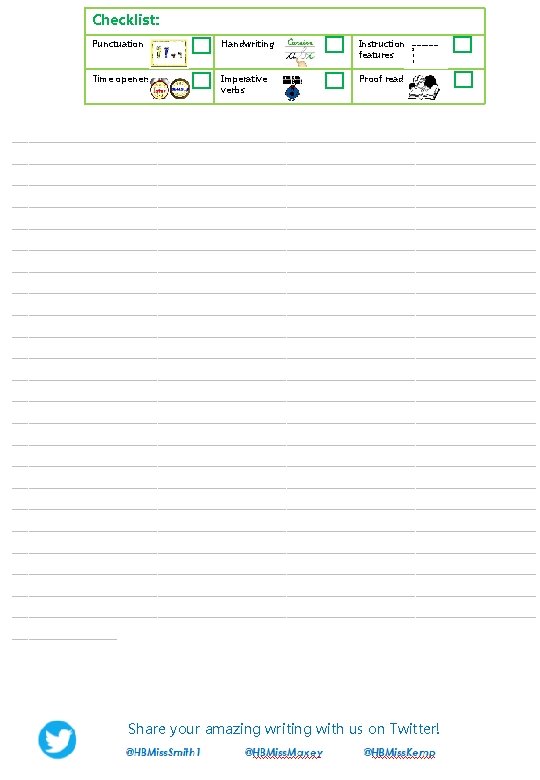 SPa. G Miss Smith and Miss Maxey’s Group Day 5 LO: write your own instructions. Time to write your instructions! Some of the sections have been blanked out for you to innovate and change (though you are welcome to change more!) Draw the missing parts and on the next page write your new instructions. Let us know on Twitter how you get on and even share a photo of your picnic if you have one! eventually after a while soon after meanwhile when before you do that