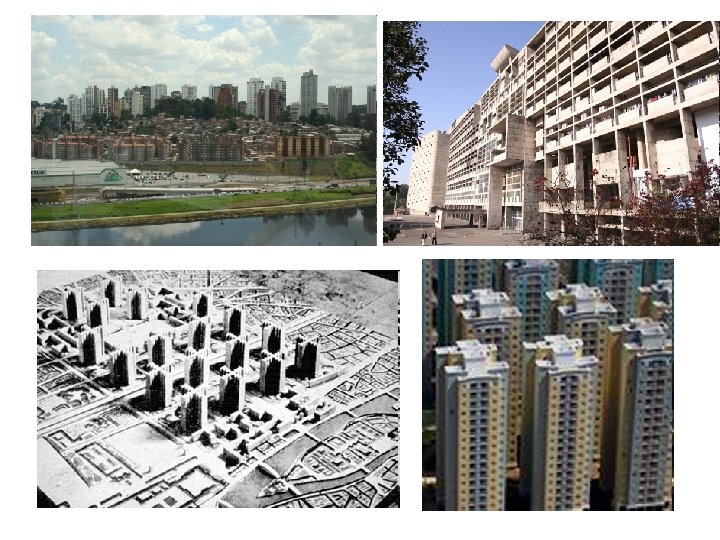 • Influenced urban planning in Brasilia, Soviet Union, Czech Republic, Algiers France, USA, UK… • Saw space as a set of destinations which mankind moved between, more or less continuously. • Gave credibility to the automobile and to motorways in urban spaces. • Justified the desire to destroy traditional urban space for high density high profit urban concentration • Le Corbusier’s ideas also sanctioned further destruction of traditional urban spaces to build motorways that connected this new urbanism to low density, low cost (and highly profitable), suburban and rural locales which were free to be developed as middle class housing.