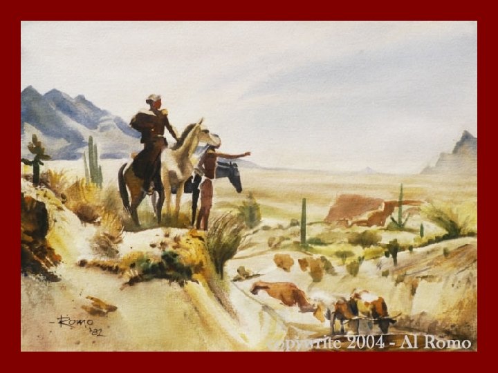 The Spaniards in Arizona • The first Europeans who entered Arizona were Spaniards, who were looking for gold. • Soon after, missionaries followed seeking to convert the Indians to Catholicism. • The name Arizona probably comes from a Basque (Spanish) word meaning “the good oak tree” after the oak trees that covered an area in south-east central Arizona where they lived.