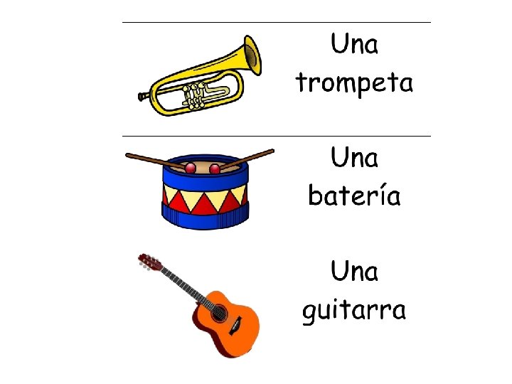 ¿Qué instrumento tocas? Toco… Quiero tocar… la batería la guitarra la trompeta la flauta el violín el piano