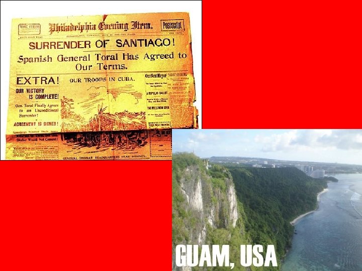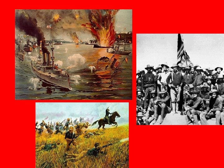 Spanish-American War • July 1, 1898 troops reached Spain’s main troops in Cuba. • Battle of San Juan Hill: American forces defeated the Spanish and destroyed the Spanish fleet in Cuba. • August 1898 the US and Spain agreed to end the war.