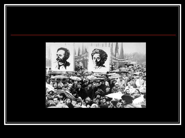 Spartacists leadership n n n The two key Spartacists leaders were Rosa Luxemburg and Karl Liebknecht. They had joined forces during WWI when they had encouraged soldiers to shoot their officers and then the government in order to overthrow it! They were arrested for this and spent most of the war in prison until they were released in November 1918.