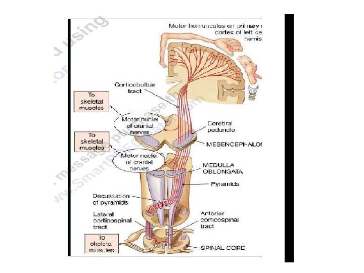 3 - STROKE: a-Haemorrhagic stroke as in cerebral haemorrhage b- Ischaemic stroke as in thrombosis or embolism -all cause death of brain tissues, results in paralysis in the opposite half of the body. A lesion in corona radiata on one side can cause monoplegia in a contralateral limb (UL or LL , according to site). A lesion in the internal capsule on one side may cause hemiplegia or hemiparesis on the contralateral side ( with the picture of upper motor neuron syndrome ).