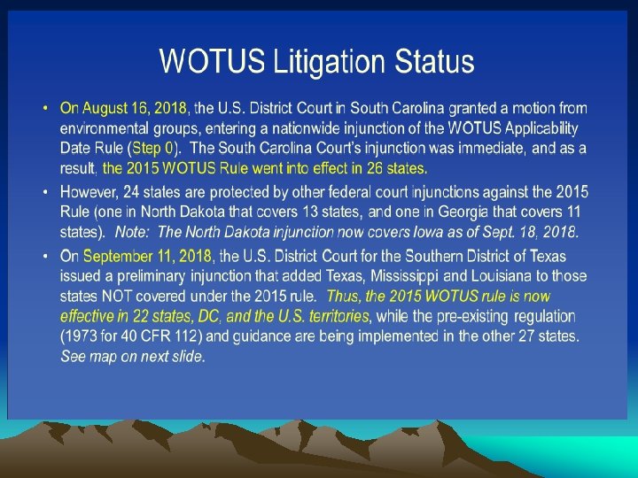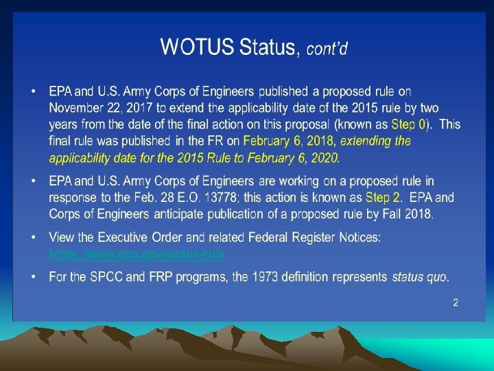 Recent Compliance Assistance Documents • 40 CFR 112 – Final & Most Recent Regulation (7/1/15) • Latest SPCC Inspection Checklists (6/1/2014) • SPCC Guidance for Regional Inspectors (8/28/13 – Update Pending) • SPCC & FRP Workshop for Onshore Facilities (Scheduling) in Addison, TX