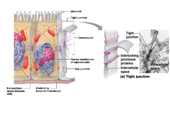 Lateral Surface Features Factors holding epithelial cells together Adhesion proteins link plasma membranes of adjacent cells Special cell junctions Tight Junctions Adherens Junctions Desmosomes Cell Junctions Tight junctions (zona occludens) – close off intercellular space Found at apical region of most epithelial types Some proteins in plasma membrane of adjacent cells are fused Prevent molecules from passing between cells of epithelial tissue