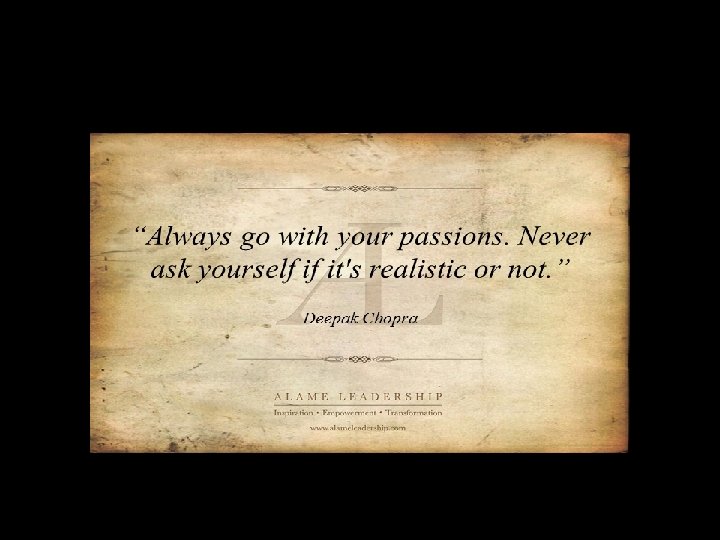 1. Passion. You will find time to do the things you are passionate about even if your schedule is full. . If you are not passionate about something you will give up on it eventually. . You must do things that you like or you will not excel!. If you have no passion in life you are just a body that walks…you are a living dead.