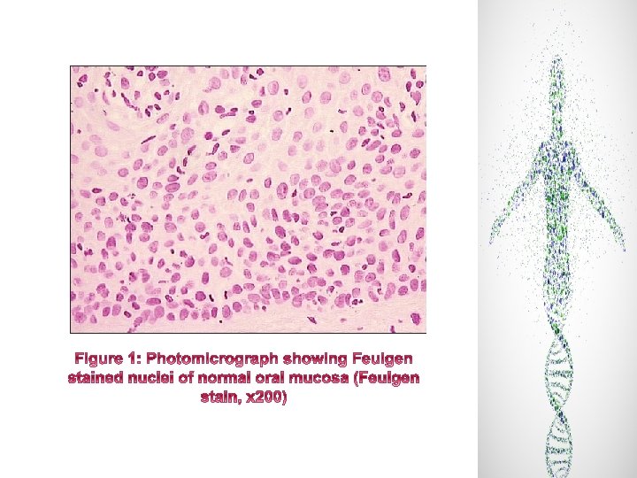 Cont. � DNA STAINING TECHNIQUES need to be improved to achieve more accurate data. � Conventional histological procedures can preserve tissue for morphological characterization, but not necessarily for macromolecules. � Analysis of DNA plays an important role in molecular biology, pathology, histochemistry, and immunohistochemistry. � A cell can be quantified by measuring total DNA content, normal or abnormal, abnormal in its nucleus